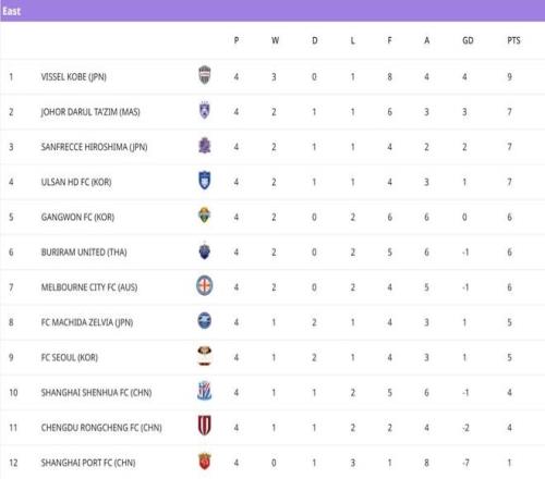 大写的尴尬!申花客场不敌柔佛新山,亚冠积分榜中超前三集体垫底